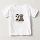 Camisa de segundo aniversário com faixa branca e preta número dois com uma borda inspirada em pom pom de várias cores. Ilustração de um urso bebê vestindo uma coroa de flores. Personalize o nome.