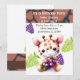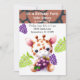 Um design lúdico com uma borda marrom com um padrão de pele de girafa. Uma girafa de bebê fofinho segurando um monte de uvas. Uvas roxas e verdes. Deve ser hora do almoço para este pequeno. Personalize este convite de tema girafa com todas as suas informações de festa de aniversário, conforme desejado.