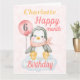 Um cartão de aniversário de 6 meses de pinguim bebê. O cartão apresenta um pinguim de menina sentado numa nuvem segurando um balão. Um design doce para qualquer menina que tenha meio ano. Um cartão especial para o seu neto ou sobrinha. Personalize o cartão grande adicionando o nome e a idade mensal da criança e depois adicione ou altere a mensagem dentro que lê atualmente ". Desejando-lhe um maravilhoso aniversário".