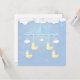 Filhote móvel com brinquedo e nuvem em azul. Feliz cartão de aniversário, estilo de arte de Chá