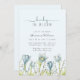 O convite para chás de fraldas do bebê no Bloom traz lindas flores florescentes na base do convite com caligrafia e um sólido e silencioso suporte azul. Este design também está disponível com fundos florais. Consulte a coleção e/ou email para solicitar itens coordenadores: info@lemontreecards.com