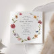 Bebê em Bloom! Este elegante convite de chá de fraldas apresenta uma coroa de água floral com verde e flores silvestres. Personalize com suas informações ou clique em "Clique para personalizar mais" para editar estilos de fonte, tamanho e cores.