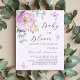 Um fundo de cor lilás macio. Decorados com um rosa lilás, roxo e eucalipto verde e borboletas, de cor aquosa. Personalize e adicione um nome e detalhes da parte. Texto: Bebê em Bloom. 1 folha = 1 convite impresso de borda a borda.