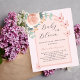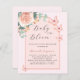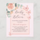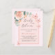 Um fundo rosa dourado com rosa dourado e arco cor-de-rosa. Decorados com ouro rosa e borboletas cor-de-rosa esbranquiçada, rosa, eucalipto verde e borboletas. Personalize e adicione o nome da mãe a ser e os detalhes da festa. Texto: Bebê em Bloom Back: cor de fundo rosa dourada. 1 folha = 1 convite impresso de borda a borda.