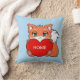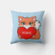 Bebê raposa fofa com coração e Casa personalizada em almofada azul claro.
