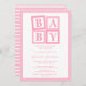 Celebre a chegada da sua menina com este Convite de Chá de fraldas para Bebês Rosa Blocks. Os blocos de bebês em tons de rosa são elegantes e simples para qualquer futuro pai!