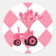 Autocolantes ou selos de envelopes para anúncios de Crianças e convites para chás com designs de trator rosa giro com balões dizendo "É uma garota!" Os balões também têm designs de um alfinete de segurança fralda, garrafa de bebê e chocalho. Criado por KLeighE das Ilustrações de Harmonia do Hinterland por KLeighE