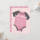 Celebre a futura mãe com este convite de chá de fraldas giro e chique apresentando uma ilustração de um macacão cor-de-rosa com um padrão moderno de abstrato.
