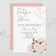 Bebê de flor rosa no convite de chá de fraldas florescente
