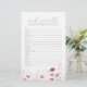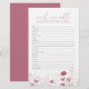 Mantenha os hóspedes entretidos com o Bebê Rosa no Jogo Bloom Wildflower Word Scramble, uma adição fofa e cativante ao seu bebê em chá de fraldas florescente. Apresentando tons cor-de-rosa macio e flores silvestres delicadas, este jogo de chá de fraldas combina diversão e elegância, fazer perfeito para qualquer celebração floral ou de jardim. Fácil de jogar e maravilhosamente projetado, este jogo de palavras rasgadas é uma forma excelente de quebrar o gelo e adicionar energia alegre às suas festividades de chá de fraldas.