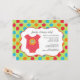 Comece o seu evento com o nosso lindo bife de bebê com um convite para Chá de fraldas de coruja com a mais doce coruja colocada num bife de bebê com bolinhas brilhantes e ousadas de coruja com bolinhas azuis vermelhas, laranja e turquesa. Nosso convite para o chá de roupas de bebê de coruja moderno e colorida é perfeito para um chá de fraldas de menina, chá de fraldas de menino ou um chá de fraldas neutro em relação ao gênero. . Apenas personalize com suas informações e você está pronto para ir! Itens correspondentes, incluindo a postagem do chá de fraldas, adesivos favoritos, cartões de agradecimento e obrigado que você adesivos também estão disponíveis em nosso compro. © Dreamlike Magic