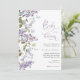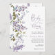 Chá de fraldas com flores lilás e roxas com borboletas. Personalize com sua redação de chá de fraldas para celebrar a mamãe a ser.