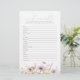 Tragam o bebê com este charmoso jogo de palavras florais que terá seus chás de fraldas convidados zunindo com entusiasmo! Este adorável jogo de palavras de flor selvagem em Bloom Wildflower é uma atividade divertida e vítrea garantida para deleitar seus convidados chás de fraldas. Os belos designs roxos e silvestres adicionam um doce toque ao seu decoro chá de fraldas feminino. Os convidados adorarão desembaraçar as palavras sobre o tema do bebê juntas e se unir ao entusiasmo da chegada do novo bebê. É uma maneira fácil de conseguir que os entes queridos se misturem e riam juntos do seu bebê em comemoração de temas sangrentos!