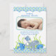O texto e a foto do bebê deste lindo menino sob o mar... o anúncio do nascimento de animais de desenho animado... são totalmente personalizáveis. Para alterar o texto e a foto, use as opções personalizar. Para alterações mais abrangentes no anúncio, incluindo alterações na fonte, cor da fonte, tamanho da fonte, tamanho da foto e/ou posicionamento de texto/foto, use a opção personalizar. As cores neste anúncio de nascimento são azul, verde e branco. Apresenta um peixe de desenho animado fofo, um polvo, e um caranguejo emparelhado de listras e bolinhas.