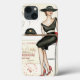 © Andrea Laliberte / Maçã Selvagem. Uma francesa de vestido preto segurando um copo de vinho. A mulher tem um chapéu preto e uma bolsa ao lado.