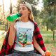 Uma bebida numa caixa com palha. Esta design parece muito eficaz nesta Camiseta das Mulheres