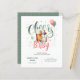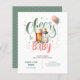 Beers e Garrafas, Cheers to Baby, Baby está Criando com flores silvestres, verde em sábio e cor de pêssego convite para chá de fraldas, neutro em sexo. Campos de texto em ambos os lados.