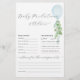 Adicione um toque de diversão e capricho ao seu chá de fraldas com nossas Predicações de Bebê e Jogo de Chá de fraldas de Conselhos! Este encantador jogo convida seus convidados a compartilhar suas previsões e conselhos para os novos pais, criando uma experiência sentida e memorável para todos os envolvidos. O jogo é fácil de jogar e oferece uma oportunidade maravilhosa para seus convidados se conectarem e compartilharem a alegria desta ocasião especial. Itens correspondentes disponíveis. Consulte a coleção de cheios aqui: https://www.zazzle.com/collections/blue_watercolor_balloon_collection-119437678416600977