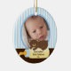 Enfeites de natal de Fotografia bonito com um urso adorável com uma garrafa colocada sobre fundo azul e marrom, basta adicionar SUA FOTO! Perfeito para o primeiro Natal e segundo Natal. Um presente de Natal Maravilhoso que certamente será precioso por muitos anos.