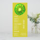 Um modelo de menu colorido e fofo para um bar de bebidas, bar de sucos, loja de frutas ou loja de alimentos saudáveis. Este menu fofo tem uma ilustração de arte original fofa de Sacha Grossel de uma fatia de fruta Kiwi com um tema cítrico contra um fundo personalizável verde-limão e amarelo. O texto pode ser personalizado para atender às suas necessidades.