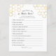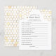 Cartão de jogo de chá de panela com padrão de colmeia do ouro e abelhas para corresponder à Coleção de Abelhas do Ouro. Uma maneira divertida de interagir com convidados de chá. Quem conhece melhor a noiva?