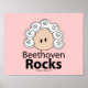 Chrissy H. Studios, bonitinho e engraçado, teve sua design original em camisas, roupas e mercadorias com um desenho Ludwig van Beethoven que diz Beethoven Rocks. Personalize este poster com qualquer cor de fundo e borda desejada! Um presente musical clássico divertido para músico, professor de música ou aluno, maestro, sinfonia ou membro da orquestra.