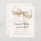 Um bege macio, fundo colorido creme, decorado com um arco grande. Personalize e adicione um nome e detalhes da parte. 1 folha = 1 convite impresso de borda a borda.