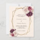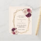 Para um casamento elegante e romântico. Um bege macio, cor creme de fundo decorado com bege pincelado macio e florais burguentos, flores. Um quadro geométrico dourado. Personalize e adicione seus nomes e detalhes. Traseiro: bege colorido. 1 folha = 1 convite impresso de borda a borda.