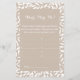 Envolva seus hóspedes com este divertido e interativo jogo de chá de panela "Onde Estávamos?". Este elegante cartão de jogo apresenta um bege chic deixa design, perfeito para um tema de chá de panela clássico. Os hóspedes vão adivinhar onde a noiva e o noivo estavam em cada foto, e fazer-a como um complemento memorável e divertido para a celebração. O convidado com as respostas mais corretas ganha! Combine com outros jogos de chá de panela correspondentes para um evento coeso e na moda.