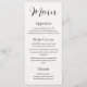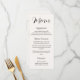 These modern wedding menus feature a tall, slim layout with a warm ivory background, combining bold script and classic serif fonts to present each course in a clean and elegant style that complements any minimalist table setting.