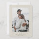 Um anúncio elegante e mínimo de Salvar a data com texto totalmente personalizável e uma grande foto de solteiro. Basta trocar sua própria foto e mudar o(s) nome(s)/mensagem. A parte traseira da placa tem texto modelo para uma mensagem mais longa ou carregue outra foto, se desejar. O design está disponível em outras cores, tamanhos e formas na minha loja.