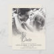 Beijar o casal de casamento no cartão de casamento monocromático, no qual a imagem, a ocasião, os nomes, a localização e a data podem ser personalizados na modelo.