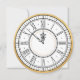 Este convite de festas Ano novo apresenta um relógio preto com algarismos romanos sobre um fundo branco. Ao redor do limite do convite está uma falsa borda de ouro. O interior do relógio diz "Beije-me à meia-noite". Todos os detalhes da parte estão no verso e podem ser personalizados para atender às necessidades do seu evento.