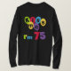 Fazer 75? Vocês vão amar o nosso Beijo-me. Sou 75 aniversariantes, camisas, canecas, cartões, adesivos, ímanes, chaveiros e outros equipamentos de aniversário de 75 anos com um balão e design de texto brilhantes e multicoloridos.