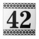 Azulejo do número - azul no branco com uma beira sextavada.