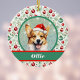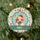Este adorno bonito trabalho de arte charmoso de um corgi, que tem um aspecto aquoso. É colocado contra um verde cintilante e luzes cintilantes ao fundo, e então bordado num verde mais escuro com um padrão de ornamento vermelho e verde. O nome do seu cão ou do seu receptor aparece em branco num cartaz verde e vermelho debaixo da imagem. Digite o nome desejado na seção Personalizar.