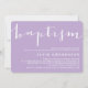 Convide os convidados a testemunhar o batismo da sua criança com estes belos convites para batismos roxos, com caligrafia clássica na frente com texto totalmente personalizável, e uma fotografia de cheio opcional no verso.