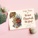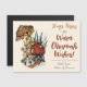 Espalhe alegria e risos nesta temporada de festas com estes bonitinhos e engraçados cartões magnéticos de Natal. A design apresenta uma ilustração pintada manualmente de um cogumelo feliz construindo um boneco de neve fora de sua casa de cogumelo vermelho. O texto diz: "Abraços, beijos e desejos calorosos de Chrismush!" Crie seus próprios cartões de natal de um tipo ao adicionar seu próprio nome ou nome de família.