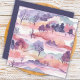 Paisagem em aquarela pastel de árvores e colinas.