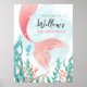 Esta bela placa de boas-vindas à festa de aniversário poster de sereia é perfeita para qualquer idade! Edite facilmente o texto com as informações do evento. Este design apresenta uma fina camada de sereia de cor d'água saltando no oceano azul. Perfeito para sua sereia! Veja toda a coleção de Sereias Bonitas para mais itens correspondentes!