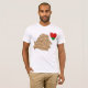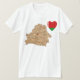 Uma bandeira bielorrussa em forma de coração é colocada ao lado de um mapa de alivio da Bielorrússia sobre esta camiseta distintamente patriótica.