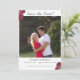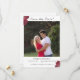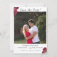 Design apresenta a foto fornecida como imagem principal. A data do casamento é claramente indicada no calendário simulado. O título é exibido em uma fonte nupcial elegante no centro superior. O símbolo tradicional de cruz e anéis aparece no canto superior direito do calendário. A imagem de rosas adoráveis agita os cantos acrescentando um toque suave. O fundo é branco. Reverter apresenta as iniciais do casal unidas na mesma fonte nupcial elegante que o cabeçalho. As informações do registro de marca são exibidas abaixo. Projetado para coordenar com a suíte de casamento católico das Rosas Finas.