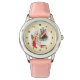 a arte safena com a ilustração da beleza clássica do conto de fadas "beleza e besta" está em um vestido cor-de-rosa e um manto vermelho sentado em uma cadeira em frente a uma mesa e tomando uma xícara de chá com a besta, um urso marrom.