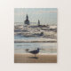 O Quebra-cabeça de Jigserra com Seagull repousa na praia como ondas zangadas do lago Michigan em volta da Rua Joseph North Pier Inner e Outer Lighthouses. Algumas destas ondas tinham de ter 10 a 15 pés de altura. Procurando mais impressões ou produtos? Sinta-se livre para visitar minha loja: http://www.zazzle.com/timelessmomentsphtgy Esta foto foi tirada por Jennifer White com Fotografia Moments Eterno. Todas as imagens são protegidas por copyright © Moments Eterno Photoographic.