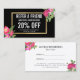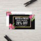 Coordena-se com qualquer um dos Modelos de cartão de negócios de Beauty Florals até 1201AM. Os buquês coloridos das flores saem das laterais deste glamouroso modelo de cartão de referência. Personalize o texto para sua própria promoção ou oferta. Excelente para salões, cabeleireiros, maquiadores, designers de unhas, boutiques e muito mais. © 1201AM CREATIVE