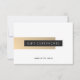 Design de cartão-presente personalizável para profissionais de beleza ou moda. Design elegante com ouro falso, faixas de cinza e fundo geométrico branco.