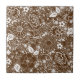 Belezas Botânicas BROWN e Azulejo cerâmico BRANCO - é um design de arte gráfica. Um impressão de fundo de várias folhas de flores; pontos e espirais. As flores estão em muitos tamanhos diferentes, do muito grande até apenas pequenos pontos. As flores e folhas botânicas são todas impressas em branco sobre fundo de cor sólida. É um design divertido e caprichoso perfeito para aqueles que adoram flores e jardins. Este impressão botânico está disponível em várias cores.