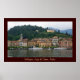 Esta é uma imagem de baixa resolução para a web, a impressão que você receberá tem detalhes nítidos. Fotografia de Minerva Bloom. Aproximando-se da cidade de Bellagio, numa manhã nublada, por ferry no lago Como, na província de Lombardia, Itália. Borda vermelha escura com texto cor de pêssego. PERSONALIZAR TI: escolha o seu tamanho, altere a cor da borda ou altere o texto!