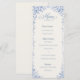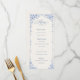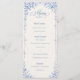 O cardápio de casamento French Blue — Bellefontaine Suite apresenta um romântico fundo azul-acinzentado adornado com delicadas flores brancas francesas para um visual refinado inspirado em propriedades rurais. Projetado num formato elegante 4x9, este cartão de menu traz um charme europeu atemporal para as mesas da sua recepção.