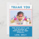 Belo Aniversário Azul Rosa Obrigado Cartão com fotos. O cartão tem listras brancas e cor-de-rosa e texto branco em azul. Carregue sua foto favorita e personalize o cartão com seu nome. Você também pode sair ou mudar a mensagem de obrigado. Excelente como cartões de agradecimentos para crianças. É uma maneira legal de obrigado seu convidado de aniversário por seus presentes, cartas e desejos.